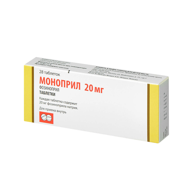 При совместном применении Моноприла с диуретиками или в сочетании со строгой диетой, ограничивающей потребление соли, или с диализом, возможно развитие выраженной артериальной гипотензии, особенно в первый час после приема начальной дозы фозиноприла.